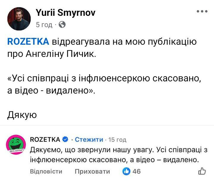 Разовая интеграция — в корзину: Rozetka отказывается от инфлюенсерки Пычик