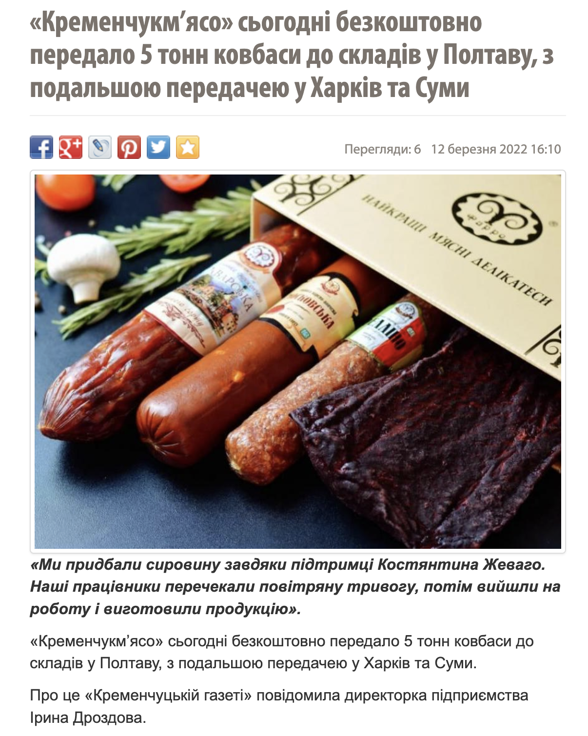 И, собственно, «Кременчугмясу», как активу, аффилированному с подсанкционным сейчас в Украине Константином Жеваго (санкции введены СНБО и Указом президента, — ред.), на страницах «Кременчугской газеты» посвящено не мало текстов. И едва ли не все они имеют сугубо «благодарственную тональность».