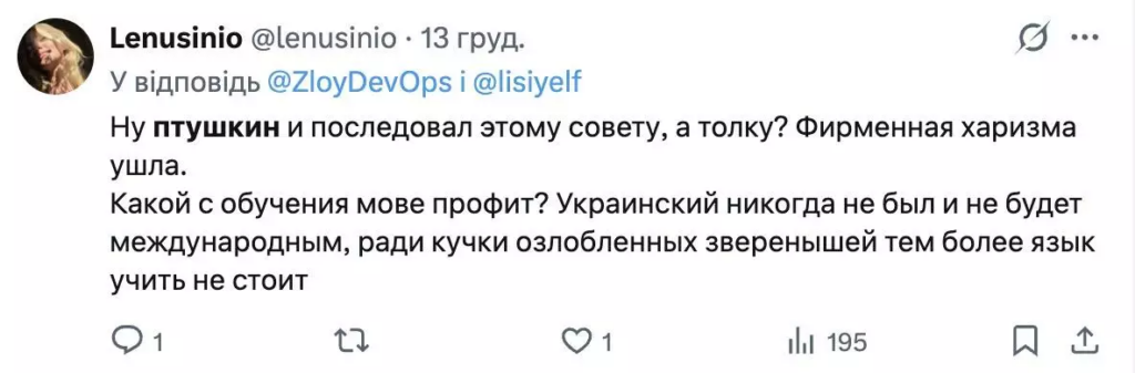 В частности, русскоязычные пользователи соцсети Х (ранее Twitter) оставляли комментарии вроде: «Из-за горстки агрессивных зверушек нет смысла изучать язык».
