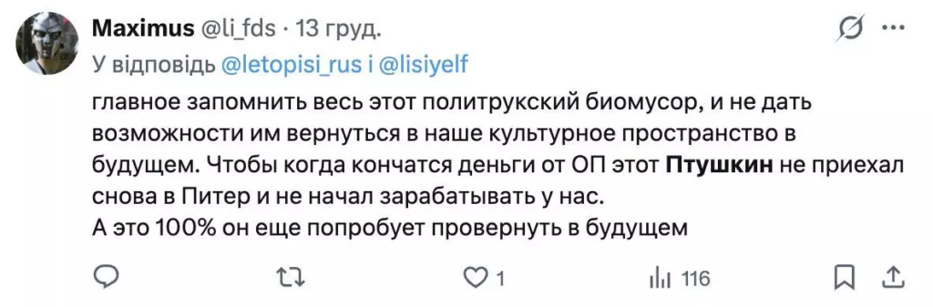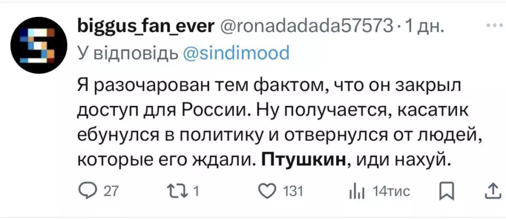 В то же время часть комментаторов отнеслась к ситуации спокойнее и отмечала, что отсутствие русского перевода логично, ведь блогер родом из Луганской области — региона, который сейчас находится под российской оккупацией.