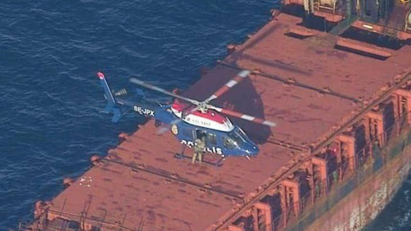 Береговая охрана Швеции применила вертолет для задержания в Балтийском море сухогруза Caffa, который, вероятно, шел под ложным флагом в порт Санкт-Петербурга.