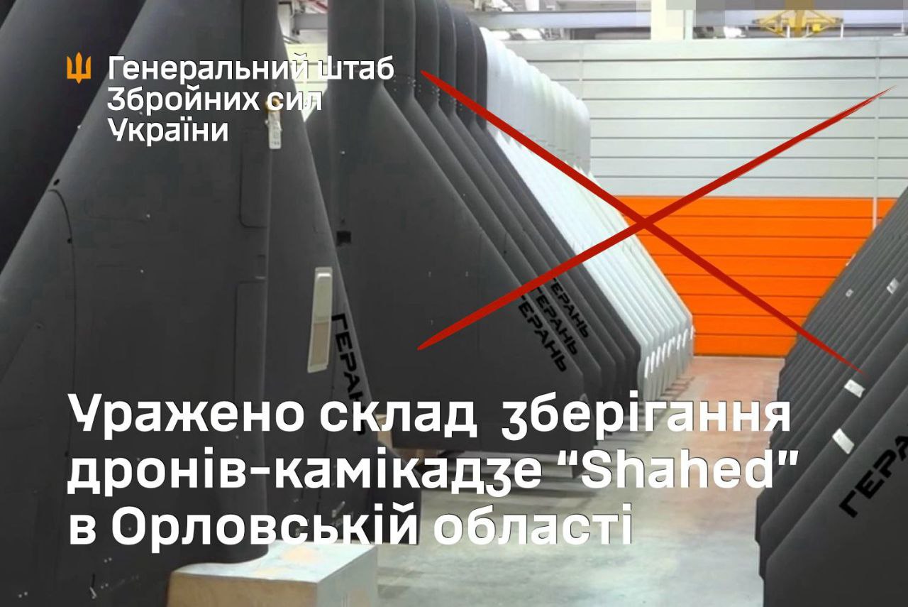 Силы обороны уничтожили склад «шахедов» в Орловской области россии