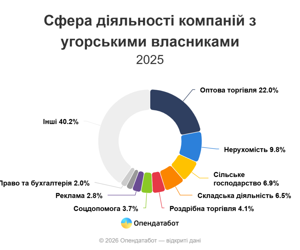 По данным Единого государственного реестра и финансовой отчетности, в Украине на данный момент зарегистрировано 246 компаний с венгерскими бенефициарами, которые отчитались за 2025 год. Часть этих предприятий имеет не только венгерских, но и украинских или других европейских совладельцев, поэтому речь идет о компаниях с международной структурой собственности.