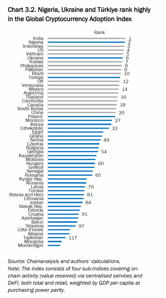 Самые высокие показатели использования цифровых активов демонстрируют Нигерия, Украина и Турция.