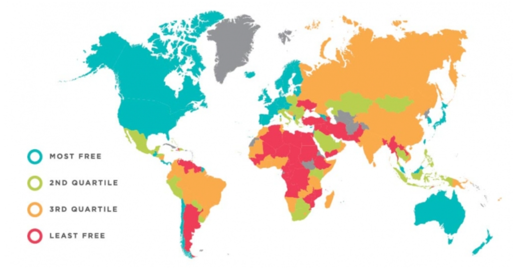 Средний мировой показатель экономической свободы продолжает снижаться.