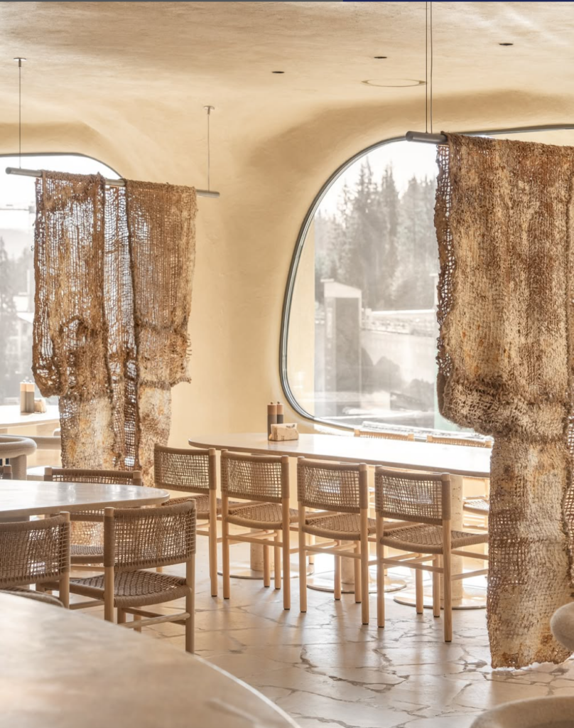 - Ánimo (США) — интерьер с волнистым потолком и полукруглыми кабинками.