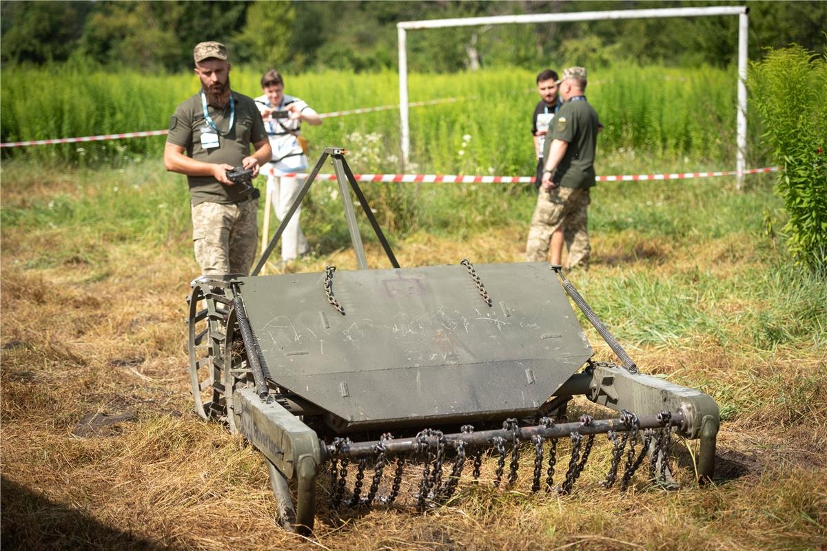 Украинские разработчики испытали на полигоне свои разработки для скашивания густой растительности, которые должны помочь саперам эффективнее работать над размин…