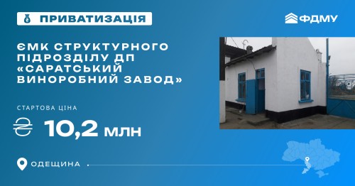 Фонд государственного имущества Украины объявил онлайн-аукцион по приватизации единого имущественного комплекса структурного подразделения ГП «Саратский винодельческий завод» в Одесской области. Торги состоятся в системе Прозорро.Продажи 10 марта.