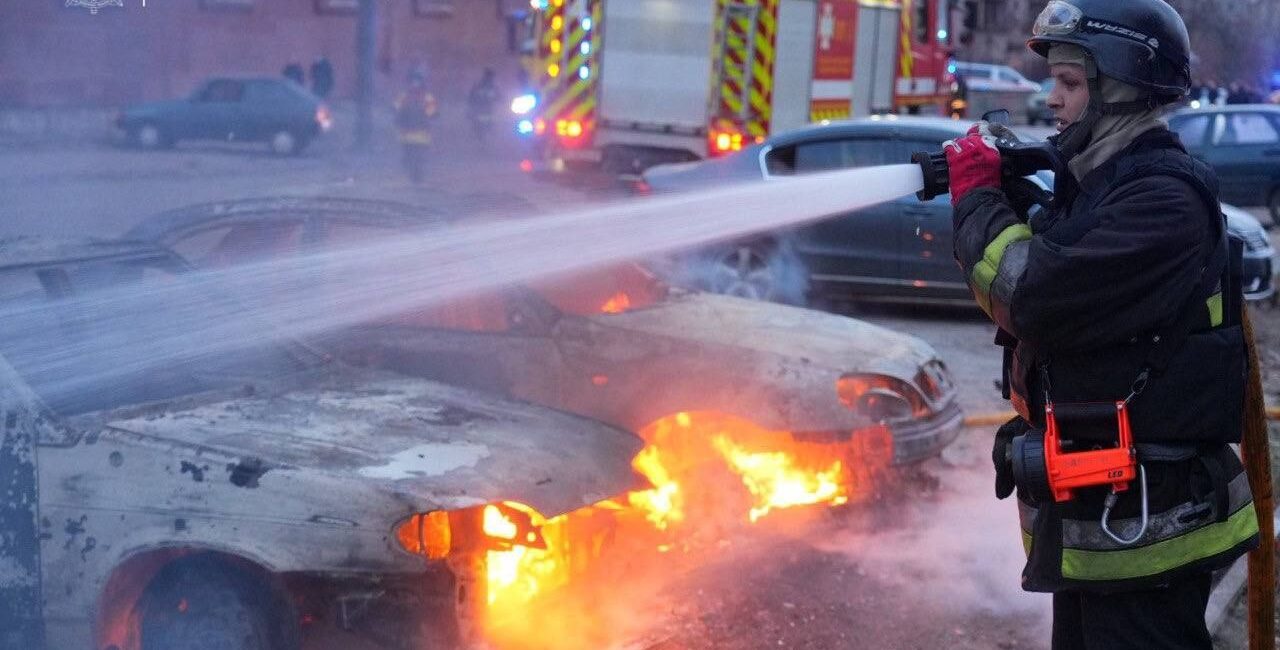 На опубликованном Иваном Федоровым видео видно, как от ракетного удара пострадал трамвай, следовавший по 14-му маршруту. Неподалеку от него пламя охватило оставленные на стоянке автомобили.
