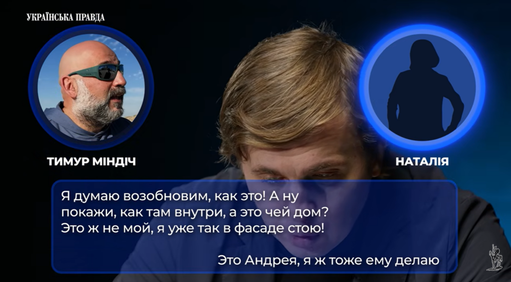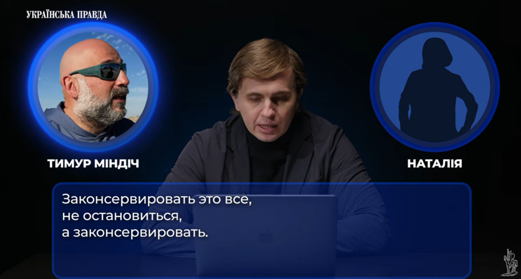 Окремий блок нових розшифровок, за даними УП, стосується розмови між Тимуром Міндічем і жінкою на ім’я Наталія, яка нібито займалася питаннями будівництва. Розмова стосувалася заморожування або консервації будівельних робіт.