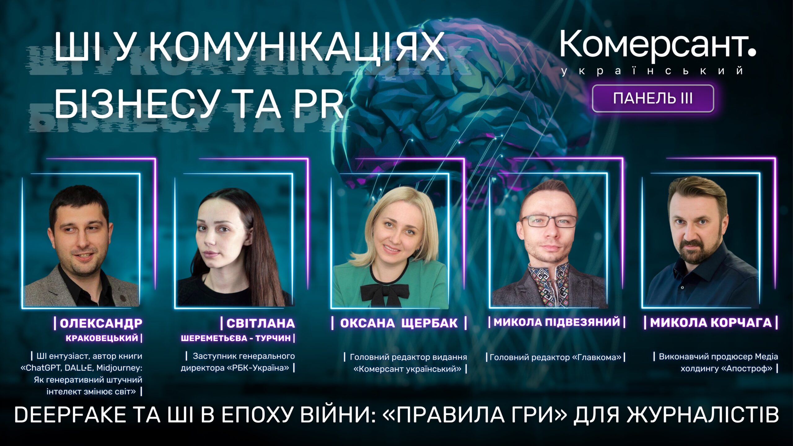 ШІ у комунікаціях бізнесу та PR: анонсуємо учасників Дискусійної панелі III — “DeepFake та ШІ в епоху війни: “правила гри” для журналістів”