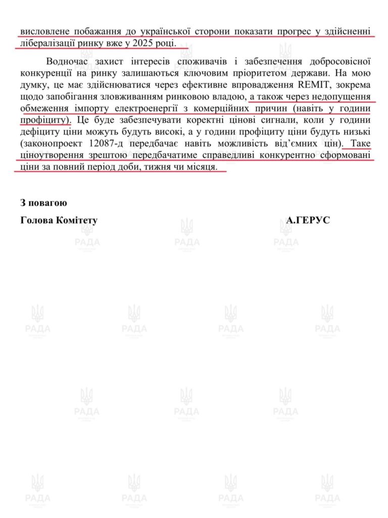 «Виявляється – голова комітету Герус на бланку комітету звернувся з таким листом, де по суті тисне на регулятора та ще й погрожує «європейцями». Звісно – ніякого рішення комітету не було і це чергова авантюра пана Геруса шляхом маніпуляцій та тиску на незалежний регулятор спробувати проштовхнути вигідне для себе рішення. Зрозуміло що я одразу спростував цю маніпуляцію пана Геруса!», – написав нардеп.