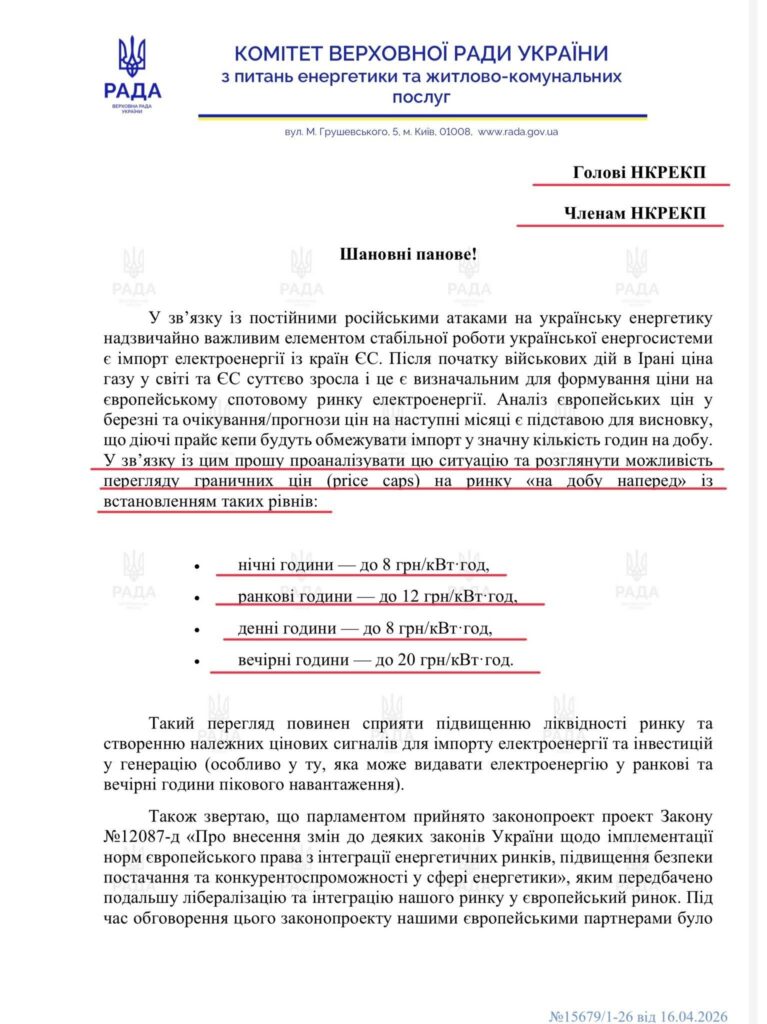 Окремо депутат стверджує, що почув під час обговорення про лист від комітету до НКРЕКП із пропозицією підняти прайс-кепи, після чого публічно заперечив, що це було рішенням усього комітету.