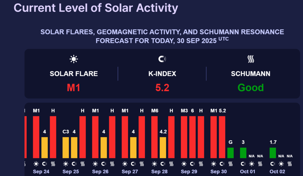 За прогнозом Meteoagent, 1 жовтня інтенсивність збурення знизиться до 3 балів за К-індексом — це зелений рівень, тобто слабка магнітна буря.