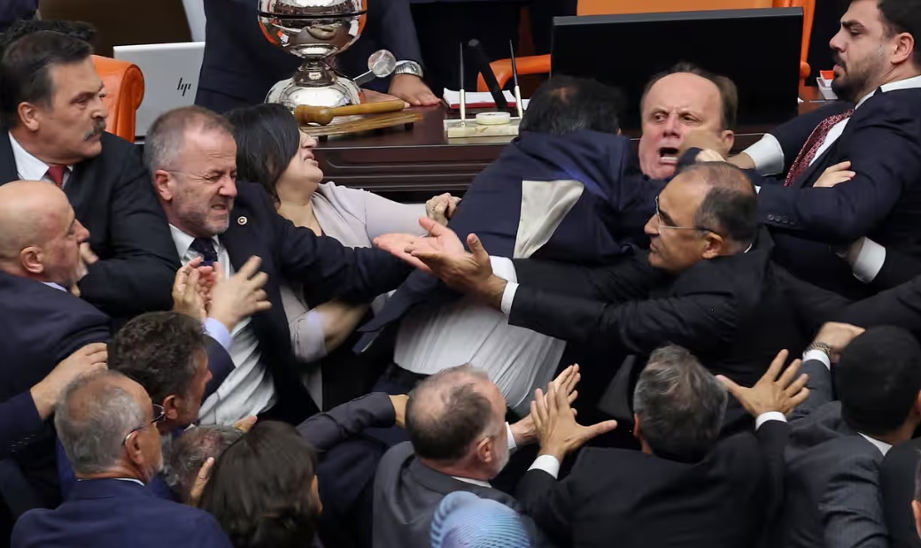У турецькому парламенті виникла масова бійка на кулаках під час дебатів щодо опозиційного політика, який зараз ув’язнений за звинуваченнями, які, як вважають, є політично мотивованими.