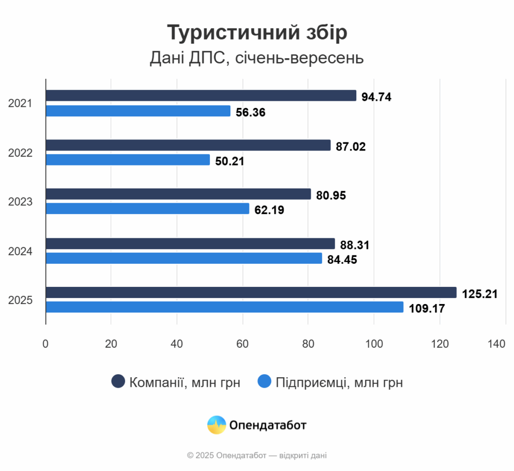 У першій половині 2025 року місцеві бюджети отримали 142,6 млн грн туристичного збору, що: