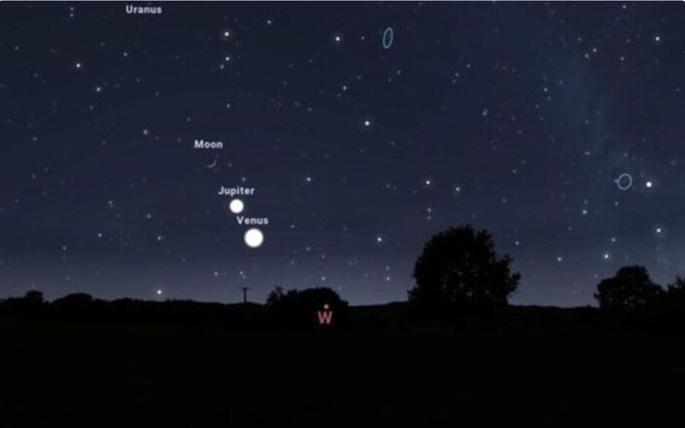 Чотири планети — Меркурій, Венера, Марс і Юпітер — можна буде побачити неозброєним оком за ясної погоди.