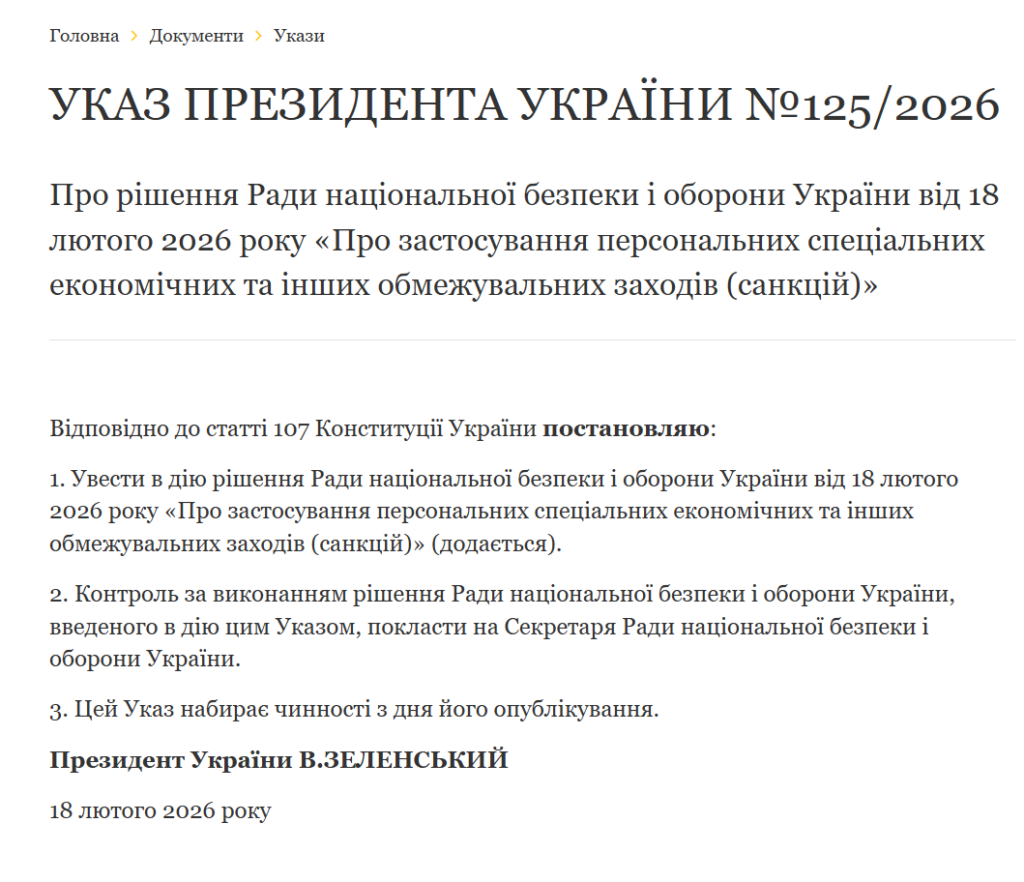 Частина обмежень введена строком на 10 років, тоді як ключові санкції, зокрема блокування активів, фінансові обмеження та заборона діяльності, застосовані безстроково.