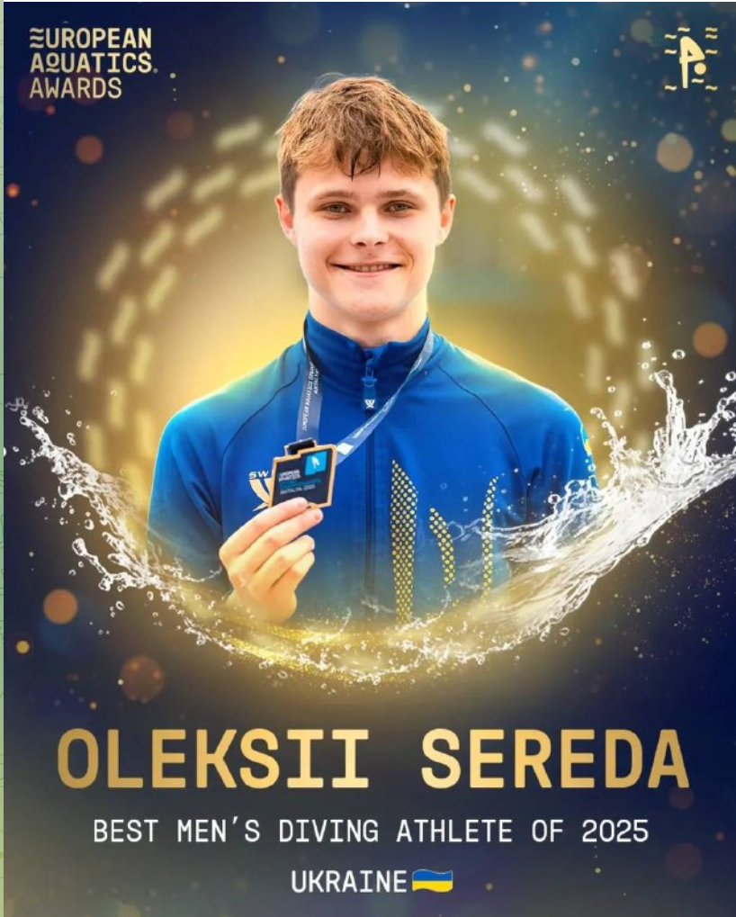 “Олексій Середа отримав престижне звання “Athlete of the Year Awards 2025″ за версією European Aquatics. Європейська федерація водних видів спорту вже вчетверте поспіль номінувала українця на цю нагороду. На цей раз перемога дісталася представнику України!” – йдеться у повідомленні.