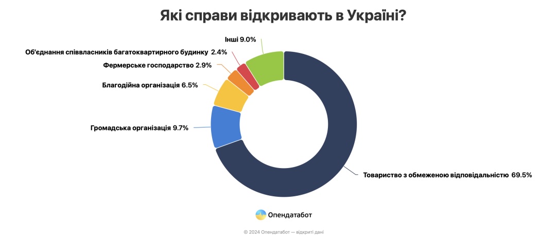 Нові фермерські господарства та ОСББ становлять всього 2,9% та 2,4% від усієї кількості новостворених компаній.