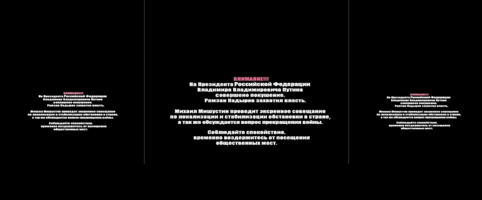 На російських телевізійних каналах на кілька хвилин перервали трансляцію і показали повідомлення про державний переворот, повідомляє . Повідомлення було показан…