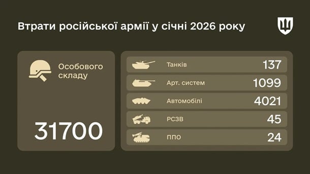 Водночас загальна статистика втрат російської армії в бронетехніці у січні 2026 року, як і протягом 2025 року, вже не є такою масштабною, як у 2023–2024 роках, коли противник втрачав 300–500 панцерників щомісяця. Причина – суттєве виснаження запасів бронетехніки та артилерійських систем ворога.