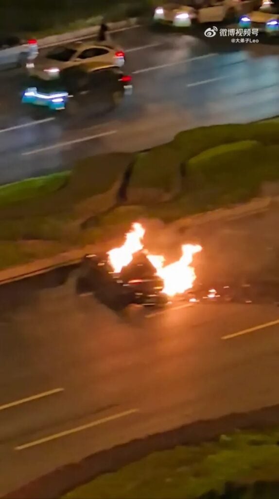 Інцидент стався 13 жовтня у місті Ченду (провінція Сичуань). За даними поліції, водій перебував у нетверезому стані, коли його авто врізалося в інший транспортний засіб, виїхало на розділову смугу та загорілося.