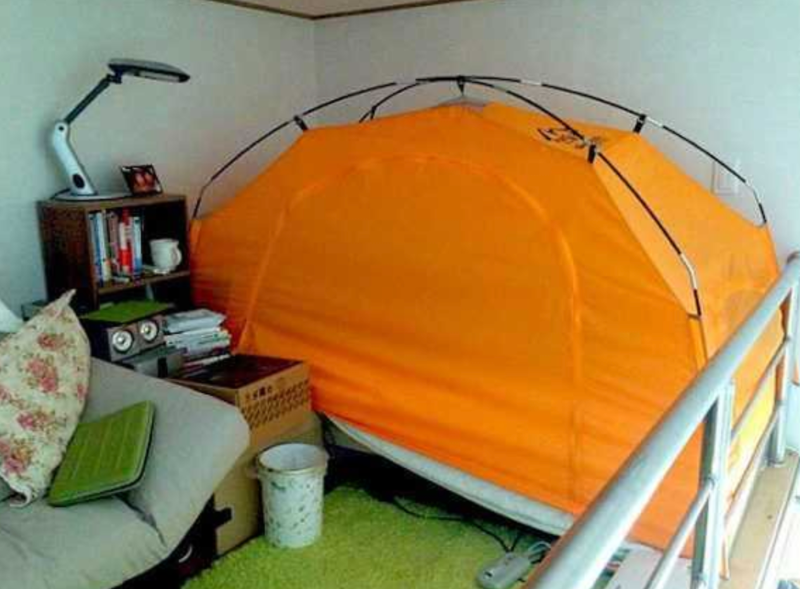 Саме там виникла ідея створювати невеликий теплий простір прямо всередині кімнати. Так, корейці ставлять туристичні намети просто на ліжко або на підлогу, стелять там матрац і сплять, оскільки в закритому просторі значно ефективніше затримується тепло. Якщо обрати двошаровий намет, різниця температур може сягати 8–10 градусів у порівнянні з температурою в кімнаті.