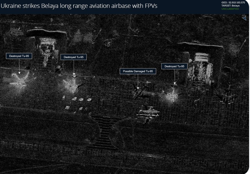 Протягом атаки 1 червня під атаки дронів потрапили такі військові аеродроми росії, як “Бєлая”, “Дягілєво”, “Оленья” та “Іваново”. При цьому «Бєлая» знаходиться більш як за 4500 кілометрів від кордону з Україною і саме туди останнім часом були передислоковані більшість Ту-95МС, які здійснювали пуски крилатих ракет Х-101 по території України.