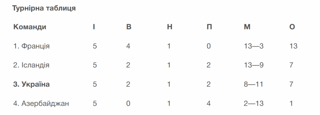 Після п’яти турів Україна має 7 очок і йде третьою в групі.